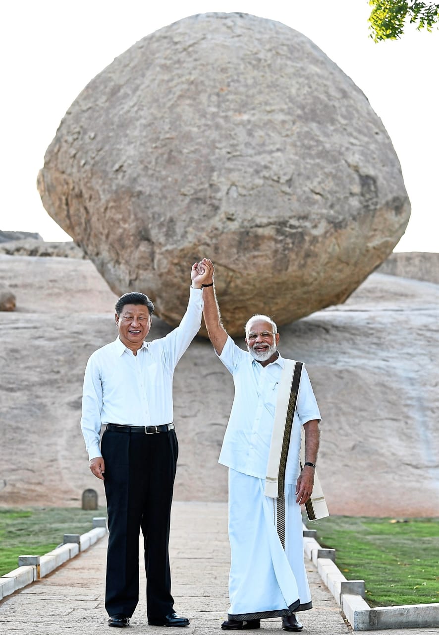 Asia’s two powers have longstanding conflicts, but are seeking common ground through “strategic communication”. The goal – stability – is pursued with a heavy dose of personal diplomacy. An enduring visual of the second ‘informal summit’ in the ancient southern Indian port of Mamallapuram on Oct 11-12 was of the two holding hands aloft in front of a gigantic circular granite boulder on a hilly slope which has miraculously not rolled down for the past 1200 years. The gravity-defying balance of Krishna’s butterball despite its structural vulnerability conveyed the essence of the easygoing and freewheeling summit of, mature neighboring countries which can avoid a catastrophic crash in relations through frank interactions of Xi and Modi, who have met seventeen times in the past five years. Thus, Coexisting with contradictions